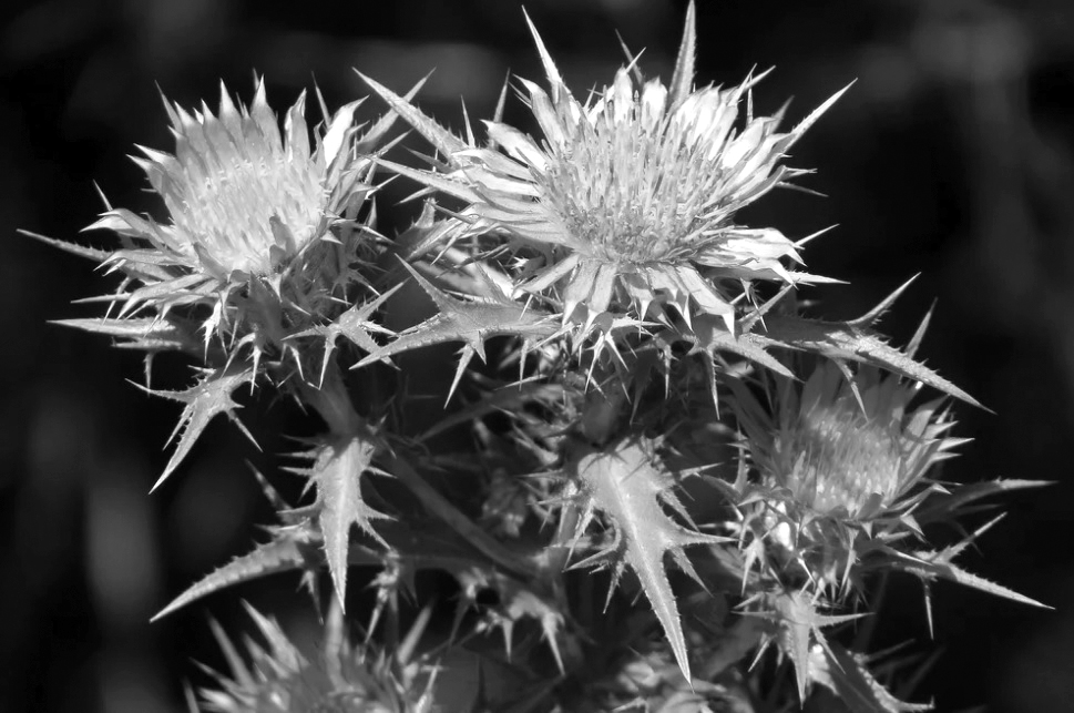 दक्षिणी स्पेन की चिलचिलाती गर्मी में हर चीज़ सूखी-सूखी नज़र आती है, घास सूख कर सरकंडे बन जाती है, पतझड़ी पेड़ों से पत्तियां झड़ कर सूख चुकी होती हैं। बस कुछ ही तरह की वनस्पतियों पर हरियाली दिखाई पड़ती है। ऐसा ही एक झंखाड़ है झुंड में उगने वाली कारलाइन थिसल (Carlina corymbosa)।