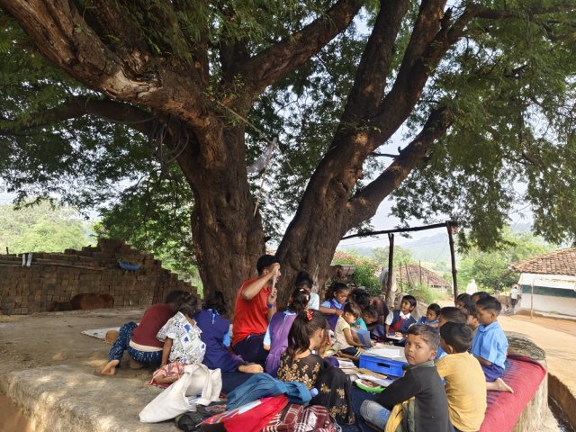Engagement with students, School Library Revitalisation at Govt. Middle School, Javra