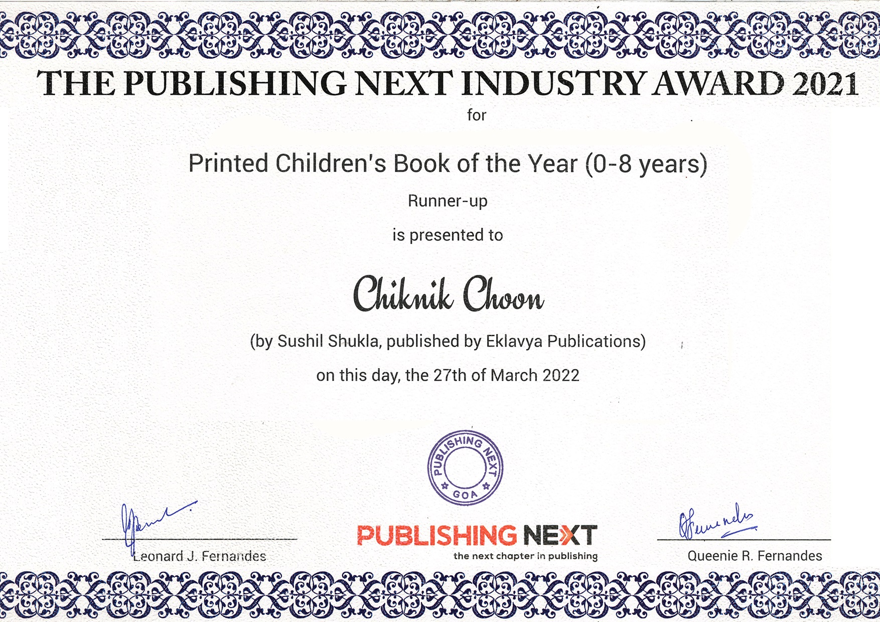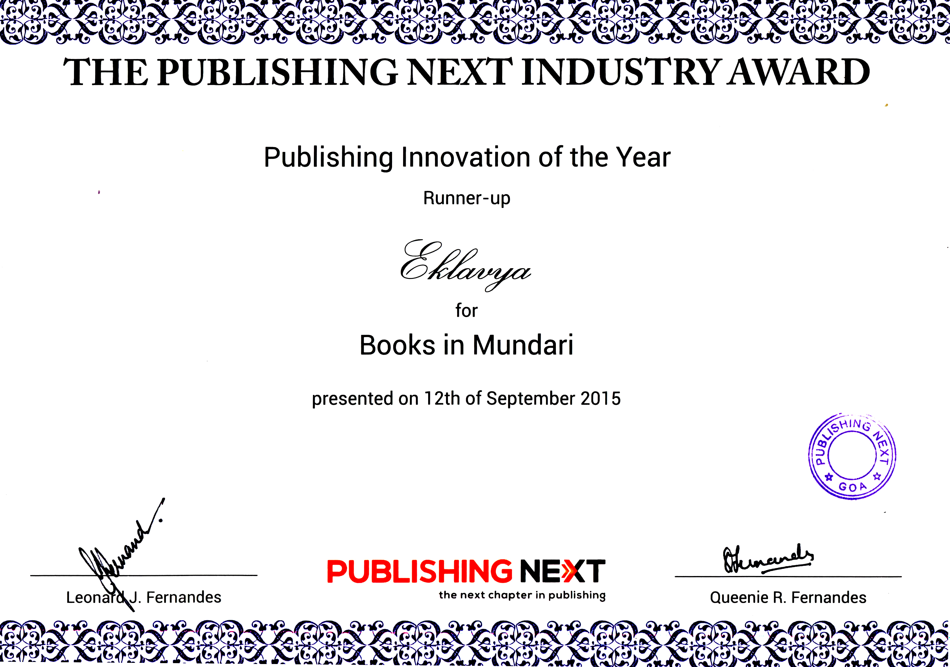 - The Publishing Next Industry Award