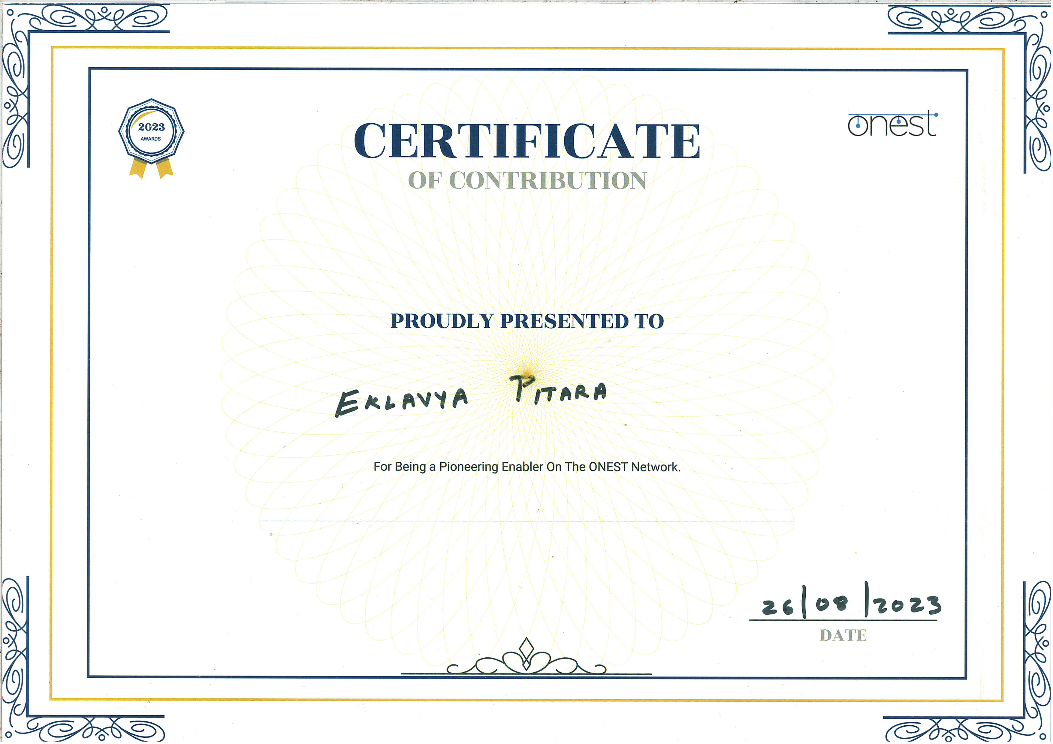 For Being a Poineering Enabler On The ONEST Network - Parag Honour List 2020