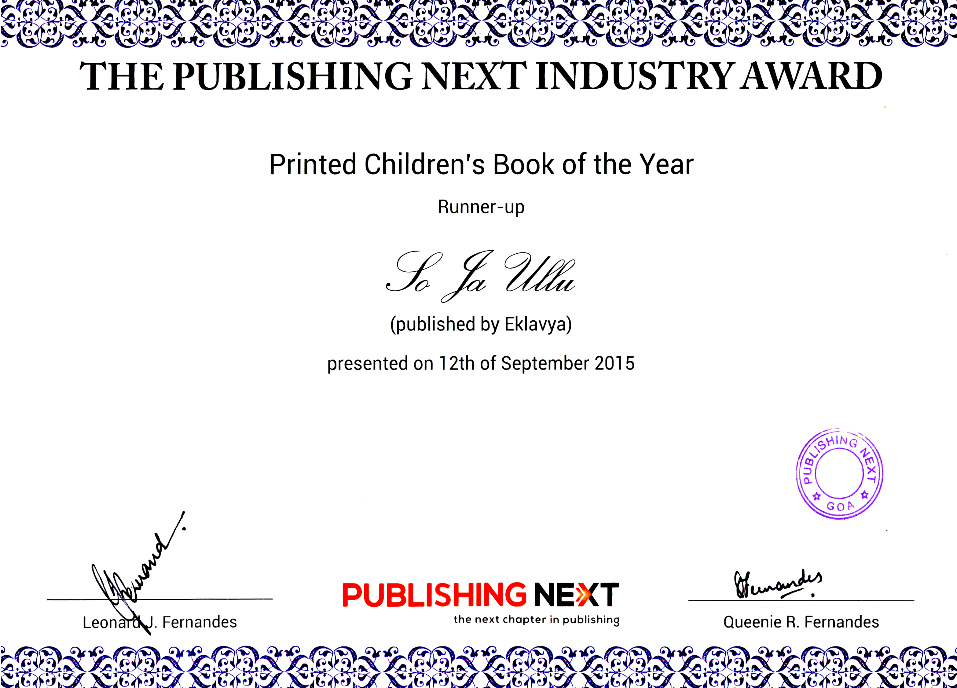 So Ja Ullu - Printed Children's Book of the year - 2015 (Runner-up)