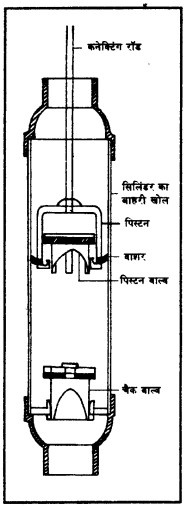 सिलिंडर : हैंडपंप का सबसे महत्वपूर्ण पुर्ज़ा जो इतनी गहराई पर रखा जाता है कि हर समय पानी में डूबा रहे।
