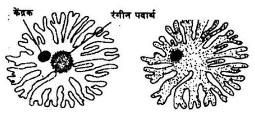 दूसरे तरह की क्रोमेटोफोर कोशिकाएं अमीबा की तरह अपना आकार बदल सकती हैं। जब रंग हल्का करना हो तो ये कोशिकाएं एकदम संकुचित हो जाती है ताकि अन्य कोशिकाओं का हल्सा-सा रंग ही दिखाई दे। जब गहरा रंग लाना हो तो ये चमड़ी पर चपटी होकर फैल जाती हैं।