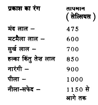 प्रकाश का रंग उनके तापमान पर निर्भर करता है। यह निर्भरता लगभग इस तरह की होती है: