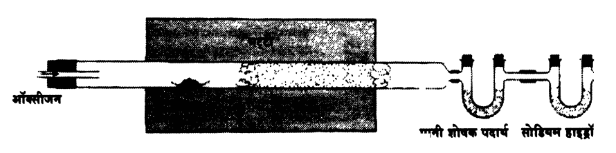 इस प्रक्रिया में कार्बन डाईऑक्साइड को कास्टिक सोड़ा के घोल में सोख लिया जाता है। और पानी को किसी अन्य पदार्थ में जो पानी के प्रति खूब जुड़ाव रखता हो। इस पदार्थ व कास्टिक सोड़ा के घोल के सोख जुड़ाव रखता हो। इस पदार्थ व कास्टिक सोड़ा के घोल को भी पहले से तौलकर रखा जाता है ताकि हमें पता चल जाए कि पदार्थ की एक निश्चित मात्रा से कितनी कार्बन डाइऑक्साइड व कितना पानी बना।