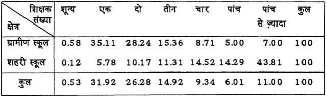 इसका अर्थ यह है कि शहरों में भी 42% प्राथमिक शालाएं ऐसी हैं जहां शिक्षकों की संख्या चार से कम है।