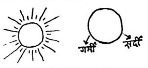 वह बोला-'"जब पृथ्वी सूरज के पास आई तब वहां गर्मी हो गई। जब सूरज से दूर चली गई तो पृथ्वी पर ठंड हो गई।"
