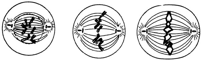कोशिका विभाजन के समय एक जटिल प्रक्रिया के द्वारा केन्द्रक में स्थित प्रत्येक गुणसूत्र खड़ी दिशा में विभाजित होकर दो भागों में बंट जाता है। इस प्रकार गुणसूत्रों की संख्या दुगनी हो जाती है। इसी अवधि में जीवद्रव्य और अन्य अंगों का विभाजन भी होता रहता है और जब तक यह प्रक्रिया पूरी होती हैं। गुणसूत्र भी अलग-अलग हो जाते हैं।