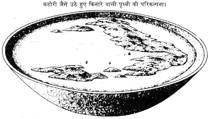 धरती को लेकर एक धारणा यह भी थी कि यह ज़मीन का एक बहुत विशाल टुकड़ा है जिसके चारो ओर समुद्र है। और जिसका कोई अंत ही नहीं है।