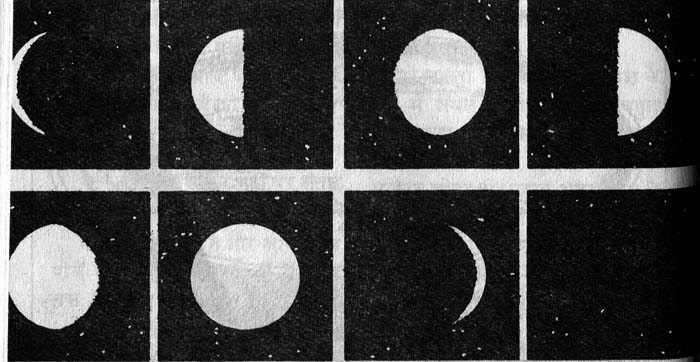 सूर्य हमेशा प्रकाश फेंकता हुआ गोला नज़र आता है, परन्तु चांद कभी पूरा चमकता हुआ गोला दिखता है तो कभी दो तिहाई, कभी आधा, तो कभी एक पतली-सी वक्र रेखा।