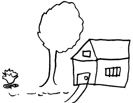 यह चित्र बनाते समय बच्‍चे का कुछ भी नहीं सोचना पड़ा। जैसा कि उसे पढ़ाया गया था उसने पेड़ और मकान के चित्र की नकल उतर दी। इस चित्र में खुद की अभिव्‍यक्ति की मात्रा लगभग नहीं के बराबर है। इसे कोई बहुत बढि़या चित्र नहीं कहा जा सकता।