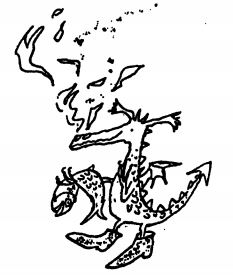 ऑलिवर ने मछली पकड़ने का कांटा निकाला और उसे मछली पकड़ने के अंदाज़ में अपने एक हाथ से हिलाने लगा। तभी मैंने अलाव में कुछ शोर सा सुना और देखा कि उसमें से पॉम्पी बाहर आ रहा है। पॉम्पी एक छोटा-सा ड्रेगन था, करीब एक फुट लंबा और एक फुट की ही उसकी दुम थी। अलाव से बाहर निकलने से पहले वह दहकते कोयलों पर लेटा हुआ था इसलिए लाल सुर्ख हो रहा था। मुझे यह देखकर बड़ा मज़ा आया कि पॉम्पी ने बाहर आकर वहां रखे ऐसबेस्टॉस के छोटे-छोटे जूते पहन लिए।