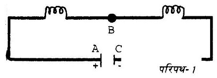 उपर दिए गए परिपथ-1 को चालू करते ही करंट पहले A, फिर B और अंत में C बिंदु पर पहुंचता है।