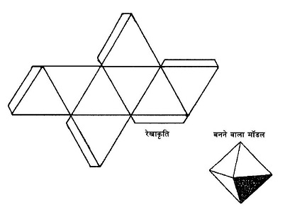 *इन आकृतियों के मॉडल तैयार करना, पाठकों के लिए लाभदायक सिद्ध होगा। एकलव्य द्वारा प्रकाशित किताब 'खेल खेल में' (लेखक - अरविंद गुप्ता) भी मददगार साबित हो सकती है। इसमें माचिस की तीलियों से मॉडल बनाना सिखाया गया है। इस लेख के अंत में भी कागज़ द्वारा मॉडल बनाने के बारे में कुछ जानकारी दी गई है।