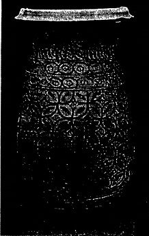 हड़प्पाकालीन एक मिट्टी का बर्तन जिस पर रेखागणितीय आकृतियों से नक्काशी की गई है।