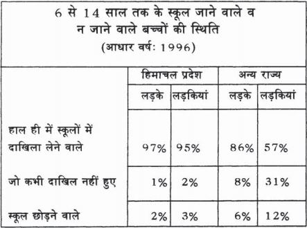 जहां तक शिक्षा का सवाल है। महिलाओं के घर से बाहर काम करने के बहुत सारे सकारात्मक आयाम हैं। जो सीधे लड़कियों की स्कूली शिक्षा पर असर डालते हैं। एक तो महिलाओं के घर से बाहर मज़दूरी करने से परिवार को होने वाली आय के लड़कियों की शिक्षा पर खर्च होने वाले हिस्से में बढ़ोतरी होती है। 'प्रोब टीम' ने अपने अध्ययन के दौरान देखा कि हिमाचल में माता-पिता लड़कियों के रोज़गार के अवसर के प्रति अधिक आशान्वित होते हैं। और यह भी पाया कि वहां पर लड़कियां भी अधिक महत्वाकांक्षी होती हैं। दूसरा कारण यह भी है कि महिलाओं के घर से बाहर काम करने के कारण शिक्षा किसके लिए जरूरी है, यह निर्णय पुरुष केन्द्रित कम होते हैं।
