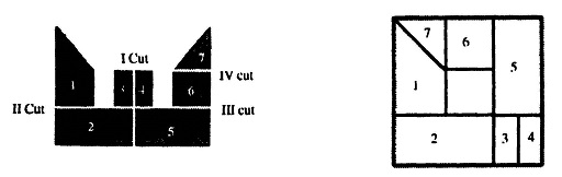 इस सवाल के हमें दो सही जवाब प्राप्त हुए हैं। खास बात यह है कि दोनों जवाब में 4 कट अलग-अलग तरीके से लगाकर 7 टुकड़े किए गए हैं। ये दोनों हल यहां दिए जा रहे हैं।