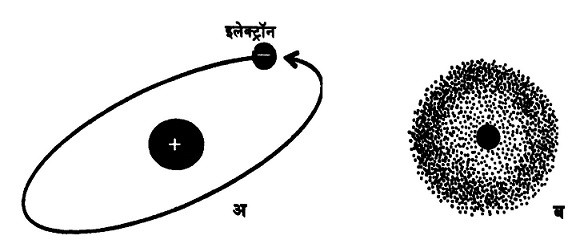परमाणु संरचना और चुंबकत्व: कुछ पदार्थों में ही चुंबकत्व क्यों होता है इस सवाल की छानबीन करते हुए वैज्ञानिकों का ध्यान पदार्थों की परमाणु संरचना की ओर गया। परमाणु के नाभिक में धन आवेशित प्रोटॉन और उदासीन न्यूट्रॉन होते हैं जबकि ऋण आवेशित इलेक्ट्रॉन नाभिक के चारों ओर चक्कर लगाते हैं। 'अ' परमाणुओं की संरचना का इस सदी की शुरुआत में प्रचलित मॉडल। 'ब' बाद में समझ बनी कि इलेक्ट्रॉन एक ग्रह के रूप में न घूमते हुए नाभिक के इर्दगिर्द एक बादल के रूप में मौजूद होता है जो नाभिक के चारों ओर घूमने के साथ साथ अपनी धुरी पर भी घूम रहा होता है।