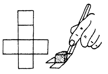 कार्ड, कैंची, चीनी के घनाकार टुकड़े।