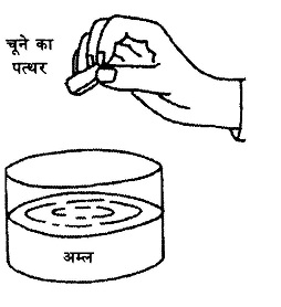चूने के पत्थरों को अम्ल में डालें और क्रिया की गति को नोट करें। जितनी तेज़ क्रिया होगी उतनी ही तेज़ी से चूने के पत्थरों से गैस निकलेगी।