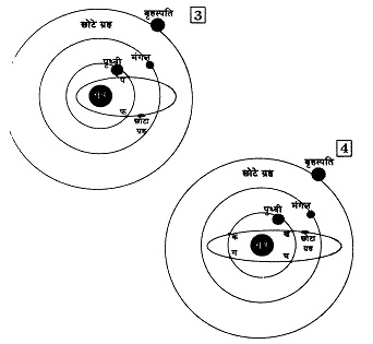 इन दो पृष्ठों पर दिए गए रेखाचित्र अनुपातिक नहीं हैं। चूंकि इनका प्रमुख उद्देश्य छोटे ग्रहों के पथ समझाना है। इसलिए ग्रहों के कक्ष व अन्य सब कुछ अत्यन्त सरल करके दिखाए गए हैं।