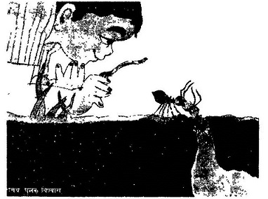 मैंने अपने आसपास देखा और आंखें पीछे की दीवार पर कुछ खोजने लगीं। दीवार के नीचे छोटी काली चींटियों की लंबी कतार चली जा रही थी। वैसे ही जैसे कोई शौर्यपूर्ण सेना रणभूमि को कूच करती है। ध्यान से देखने पर नीचे फर्श के पास दीवार पर एक दरार पाई, जिससे होकर चींटियां बाहर जा रही थीं। खाने की छुट्टी की घण्टी बजते ही मैं भाग कर अपनी कक्षा के पीछे गया। वहां एक छेद से चींटियां बाहर आ रही थीं। घास पर से होकर वे अमरूद के पेड़ की तरफ बढ़ रहीं थीं।