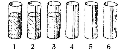 6. अगले पृष्ठ पर दिया चित्र देखिए, उसमें 6 गिलास बनाए गए हैं। तीन वाली और तीन भरे हुए। हम चाहते हैं कि गिलासों में एक क्रम स्थापित हो जाए - भरा, खाली, भरा, खाली, ..... बस शर्त यही है कि सिर्फ एक गिलास को हाथ लगाकर ही यह क्रम बनाना है। यानी किसी एक गिलास को छूना है, उसके बाद आप दूसरे किमी गिलास को हाथ नहीं लगा सकते है।