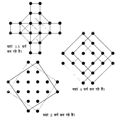 और वर्ग खोजकर यह संख्या 21 तक जा पहुंची। कई पहेलियों में ऐसा अक्सर होता रहता है कि पहेली के निर्माता एक हल सुझाते हैं, बाद में सवाल के कुछ और हल निकल आते हैं।