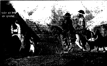 फकीरों के बाने में सर्वेयर: 19वीं सदी में भारतीय उपमहाद्वीप का सर्वे करना ईस्ट इंडिया कम्पनी के लिए एक प्रमुख प्रोजेक्ट बन गया था। उन दिनों नेपाल, भूटान, सिक्किम, तिब्बत आदि ने अपनी सीमाएं यूरोपीय नागरिकों के लिए बंद की हुई थीं। कुछ समय बाद सिक्किम और भूटान ने अपनी सीमाएं खोल दी। उस समय कई बार अंग्रेज़ सर्वेयर वेशभूषा बदल कर नेपाल-तिब्बत की सीमाओं में घुसकर अपना काम कर लेते थे। 1812 में एच. बाई, हेर से और विलियम मुरक्रॉफ्ट भारतीय फकीरों की वेशभूषा में तिब्बत गए थे। इस चित्र को हेर से ने खुद बनाया था।