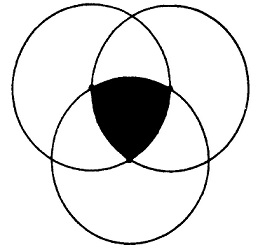 ऊपर तीन वृत्त बने हैं जिनकी परिधि दुसरे वृत्त के केन्द्र से होकर गुज़र रहीं हैं। इस बार आपको यह बताना है कि ऊपर तीनों वृत्तों द्वारा एक-दुसरे को ढांकने से बना शेडेड भाग किसी भी एक वृत्त के चौथाई हिस्से से बड़ा है या छोटा है। वैसे सवाल का जवाब आप गणितीय विधि से दे सकते हैं या किसी तर्क के आधार पर भी।