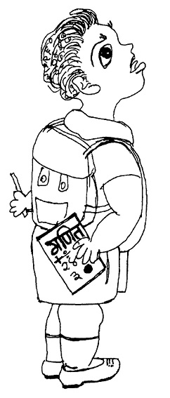 उसके बाद मैं धीरे-धीरे बड़ा हुआ, मेरे लिए विधिवत एक गणित की किताब आई। उस किताब को देखते ही मेरा दिमाग खराब हो गया। हमारी उस वक्त तक पढ़ी हुई कोई किताब - साहित्य, भूगोल, इतिहास या प्रकृति-अध्ययन - उस गणित की किताब जैसी डरावनी दिखाई नहीं दी थी। सभी पुस्तकों में तरह-तरह के चित्र थे। बिल्ली, कुत्ते, पुरी का मंदिर, सांप, नेवला, पहाड़, पेड़, चिड़िया, मछली, ताजमहल, मनुष्य, चांद और सूरज, बादल, अकबर, बाबर, दशरथ, मुनि-ऋषि, यहां तक कि इंद्र, वायु जैसे देवताओं के चित्रों से युक्त वे किताबें बड़ी आकर्षक लगती थीं। लेकिन इस गणित की किताब में शुरू से आखिर तक सिर्फ गणित के सवालों के सिवाय और कुछ न था। तब काफी तलाशने के बाद मैंने उसमें से एक घड़ी का चित्र खोज निकाला, उस तस्वीर की स्याही भी फीकी पड़ गई थी। लेकिन उसमें तीन कांटे स्पष्ट दिखाई दे रहे थे। कांटे एक से बारह तक की संख्या में से किसी-न-किसी की ओर इशारा कर रहे थे। उसके नीचे बड़े ही कठिन सवाल थे। जैसे - घड़ी की बड़ी सुई जब दस पर और मिनट की दो पर हो, तब दस बजकर कितने मिनट हुए?