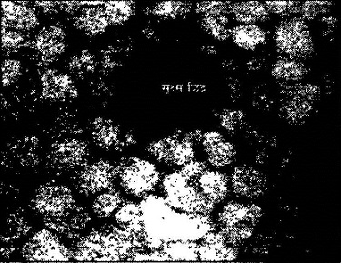 ऊपरः अंडे के खोल का एक्स रे माइक्रोग्राफ, जिसमें कैल्शियम कार्बोनेट का क्रिस्टलीय रूप - केल्साइट दिखाई दे रहा है। चित्र में बीच के हिस्से में गहरे रंग का धब्बा सूक्ष्म छिद्र है। जिससे होकर वायुमंडलीय ऑक्सीजन अंडे के भीतर प्रवेश करती है. और भीतर की कार्बन डाइ ऑक्साइड बाहर निकलती है। इस छिद्र का व्यास लगभग 0.017 मि. मी. होता है। नीचेः अंडे के खोल की खड़ी काट दिखाई गई है। इसमें केल्साइट की परत के अलावा केल्साइट के क्रिस्टलों के बीच बना सूक्ष्म छिद्र दिखाई दे रहा है। चित्र में नीचे की ओर अंडे के कवच की अंदरुनी रचनाएं दिख रही हैं जो दोनों झिल्लियों को पकड़े रहती हैं।