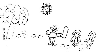 यही सब गतिविधियां करते हुए हमने लगभग छ: महीने बाद आम के पेड़ व बच्चों वाला वही चित्र दोबारा बच्चों को दिया। इस बार बच्चों ने काफी विस्तार से लिखा था। बतौर उदाहरण यहां एक-दो नमूने पेश कर रहे हैं।