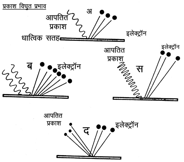 प्रकाश कणों (फोटॉन) से बना होता है। एक इलेक्ट्रॉन को किसी धातु की सतह से हटाने के लिए ऊर्जा की एक न्यूनतम राशि की ज़रूरत होती है। (यह इस बात पर निर्भर करता है कि धातु कौन-सी है।) यदि एक फोटॉन की ऊर्जा इस ‘न्यूनतम राशि’ से ज़्यादा है तो इलेक्ट्रॉन उसमें से निकलकर अलग हो जाएगा। यदि फोटॉन की ऊर्जा इस मूल्य से कम है तो उत्सर्जन नहीं होगा।