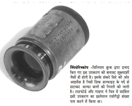 करते यह हैं कि रेडियम का एक छोटा-सा नमूना लेकर उसे ज़िंक सल्फाइड के पर्दे के सामने रख देते हैं और एक दूरबीन में से देखकर गिनते रहते हैं कि कितने अल्फा कण निकले।