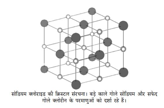 एक्स किरण विवर्तन से पता चलता है कि इस क्रिस्टल में एक सोडियम परमाणु से दूसरे की दूरी 5.65 आंगस्ट्रॉम है। तो चार सेलों का आयतन होता है 5.653 आंग्रस्ट्रॉम3 = 179.1 आंगस्ट्रॉम3। एक सेल का आयतन हुआ 44.8 आंगस्ट्रॉम3। घन से.मी. इकाई में यह आयतन होगा 44.8 x 10-24 से.मी.3।