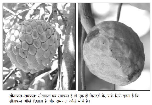 सीताफल में तो ये अण्डाशय (उभार) साफ दिखते हैं परन्तु इसी फल की एक अन्य जाति रामफल में ये इतने जुड़ जाते हैं कि फलभित्ती लगभग चिकनी हो जाती है और अण्डाशयों की संख्या की जानकारी फलभित्ती पर दिखाई देने वाली धारियों से ही मिलती है। यानी रामफल के अण्डाशय सीताफल के अण्डाशयों की तुलना में जुड़ाव की अगली पायदान प्रदर्शित करते हैं।