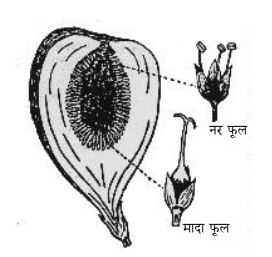 खैर, गूलर में भी फूल होते हैं। इस खोखली गेंद के अन्दर, केन्द्र में मादा फूल व इसके ऊपरी मुँह वाले भाग पर चारों ओर नर फूल लगे होते हैं। मादा फूलों का निषेचन होने पर अण्डाशय से एक बीजी एकीन फल (dry one-seeded fruit) बनते हैं और ये सैकड़ों एकीन फल और पुष्पक्रम एक कम्पोज़िट फल का निर्माण करते हैं। अत: हम जब पका अंजीर और गूलर खाते हैं तो एक पूरा-का-पूरा पुष्पक्रम, नर फूलों व फलों के साथ खाते हैं, और इसमें जो करकराहट महसूस होती है वह उसके एक बीजी फलों के कारण आती है। इसमें खाने योग्य भाग मुख्यत: रसीला मांसल पुष्पक्रम का अक्ष ही होता है। कुल मिलाकर यह भी कहा जा सकता है कि अंजीर, अनानास और कटहल प्रकृति के खाने योग्य रसीले, सुगन्धित, मीठे पुष्प गुच्छ अर्थात् प्रकृति के रसीले बुके हैं।
