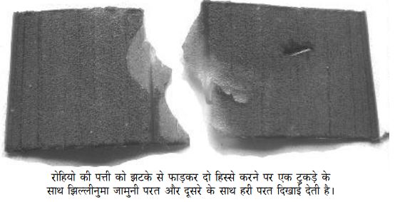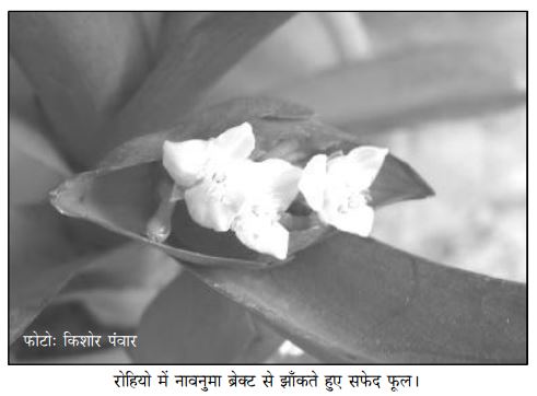 फिलहाल रोहियो के साथ इतने ही प्रयोग करेंगे। ये प्रयोग रोहियो की पत्ती की बाहरी एवं आन्तरिक रचना को समझने के लिए हैं। इन्हें करते हुए आपको यह भी समझ आ गया होगा कि रोहियो की पत्ती दोरंगी क्यों है। और यह भी कि बाहर से तो पत्ती ठोस दिखती है परन्तु अन्दर कितनी पोलम-पोल है।