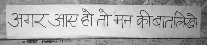 उपस्थिति चार्ट- नन्हे बच्चे अक्सर सबसे पहले अपना नाम लिखना सीखते हैं। जिन कक्षाओं में बच्चों की संख्या सीमित थी, वहाँ पर इस प्रक्रिया को कक्षा में बच्चों की उपस्थिति से जोड़ा। ‘उपस्थिति रजिस्टर’ की जगह बच्चों के नाम, एक चार्ट में क्रम में लिखे गए। साथ ही ऊपर एक पंक्ति में तिथियाँ लिखी गईं। इस चार्ट को बच्चों की पहुँच के अनुसार कक्षा की दीवार पर लगाया गया। सबसे पहला नाम कक्षा के शिक्षक का लिखा गया। जैसे-जैसे बच्चे अपना नाम पढ़ना सीखते गए वे अपनी उपस्थिति चार्ट में स्वयं लगाने लगे। बच्चे एक-दूसरे की सहायता भी करने लगे। कुछ ही दिनों में लगभग सभी बच्चे सबके नामों से परिचित हो गए। अब बच्चों को प्रोत्साहित किया गया कि वे अपने नाम के सामने रोज़ अपनी कोई छोटी बात लिखें या चित्र बनाएँ। शिक्षक भी लिखने लगे। इस प्रक्रिया से बच्चे बहुत उत्साहित हुए। किसी ने लिखा, “आज मैं आई हूँ”; तो किसी और ने लिखा, “मैंने बूट पैने हैं”। यहाँ पर गलतियों को सुधारा नहीं गया ताकि बच्चे खुलकर इस वास्तविक, लिखित सम्प्रेषण में भाग लें।