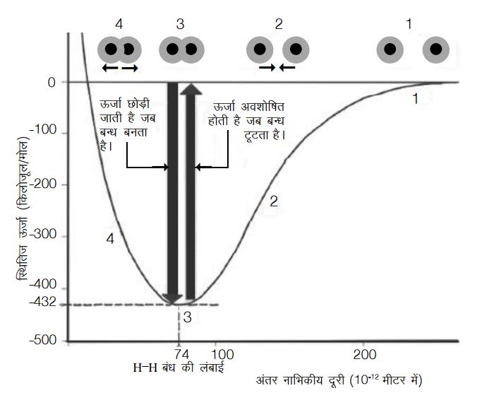 जब भी दो परमाणु पास-पास आते हैं तो उनमें कई तरह से अन्तर्क्रिया हो सकती है। पहली है कि वे पास-पास आएँ और फिर दूर-दूर चले जाएँ। यानी ‘यूँ मिले थे कि मुलाकात हो न सकी’। दूसरा, यह भी हो सकता है कि वे पास-पास आएँ और उनके बीच कुछ ऐसा आकर्षण पैदा हो कि वे फिर से दूर-दूर न जाएँ। तब हम कहते हैं कि उनके बीच बन्धन बन गया है। अब इस बन्धन को तोड़ पाना इस बात पर निर्भर है कि यह बन्धन कितना मज़बूत बना है।किसी भी बन्धन की मज़बूती इसी आधार पर नापी जाती है कि उसे तोड़ने या बनाने में कितनी ऊर्जा लगती या निकलती है। इसे बन्धन ऊर्जा कहते हैं। आगे हम बन्धन ऊर्जा की बात आँकड़ों के रूप में करेंगे।