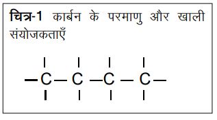 चूँकि कार्बन चार बन्धन बनाता है इसलिए तमाम सम्भावनाएँ उभरती हैं। एक तो जैसा कि ऊपर कहा गया कार्बन लम्बी-लम्बी बना सकता है। यह तो तब भी हो सकता था यदि कार्बन की संयोजकता 2 होती। मगर तब जो बनतीं वे शुद्ध कार्बन होतीं। मगर जब 4 बन्धन बन सकते हैं तो कार्बन सिर्फ लम्बाई में नहीं चौड़ाई में भी बढ़ सकती है और इस पर अन्य तत्वों के परमाणु भी जुड़ सकते हैं। जैसे यदि 4 कार्बन की एक को देखें तो यह दो तरह से बन सकती है।चित्र-1 में तो सिर्फ 4 कार्बन का ढाँचा दर्शाया गया है। अभी प्रत्येक कार्बन परमाणु की कुछ संयोजकताएँ रिक्त हैं। यहाँ या तो कार्बन के और परमाणु जुड़ सकते हैं या अन्य तत्वों (जैसे हाइड्रोजन, ऑक्सीजन, नाइट्रोजन, हैलोजन्स) के परमाणु। इस तरह से कार्बन असंख्य अणु बना सकता है।