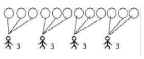 आज कक्षा में 25 लड़कियाँ थीं। मैंने फिर सवाल दोहराया, “हमारे पास 12 रोटियाँ हैं जिन्हें 4 लड़कियों में बाँटना है।” गतिविधि के दौरान मैंने देखा कि 21 लड़कियों ने सवाल को चित्र के सहारे कुछ इस तरह से हल किया।