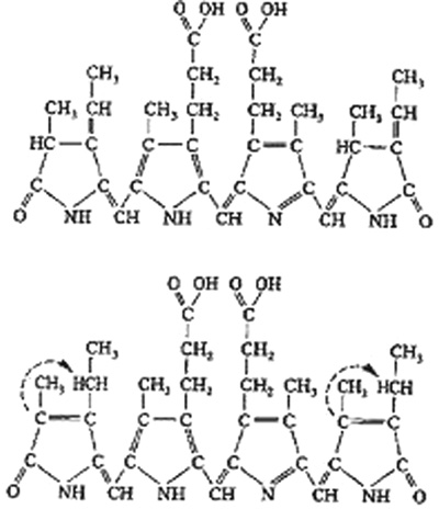 फाइटोक्रोम का रूप परिवर्तन फाइटोक्रोम: पौधों में पाया जाने वाला एक रंजक है। ये दो रूपों पी-आर और पी-एफआर में पाया जाता है। लाल प्रकाश और इंफ्रारेड के सम्पर्क से ये एक-दूसरे में तब्दील हो जाते हैं। फाइटोक्रोम ने पौधों के विकास और वृद्धि की कई गुत्थियों को सुलझाया है। नीचे फाइटोक्रोम के दोनों रूपों की रासायनिक संरचना को दिखाया गया है।
