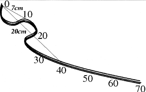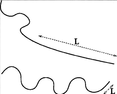 अब 0 से.मी. से इन चिन्हों के बीच की दूरी नापिए। उदाहरण के लिए अगर आप चित्र-3 को देखें तो 0 से.मी. से 10 से.मी. के चिन्ह को नापने पर 7 से.मी. मिला, 0 से 20 से.मी. नापा तो 10 से.मी. मिला, 0 से 30 से.मी. नापा तो 14 से.मी. मिला, 0 से 40 से.मी. नापा तो 20 से.मी. मिला इत्यादि। आप देख सकते हैं कि मुड़ने की वजह से चिन्हों के बीच की लम्बाई उसकी सीधी और सरल अवस्था से कम हो गई है। खास तौर पर, रस्सी के दोनों छोर के बीच की दूरी की तुलना, उसकी लम्बाई से करें तो हमें रस्सी के कड़कपन के बारे में पता चलता है।
