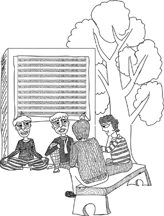 सबसे पहले हम नापाम गाँव के पंचायत ऑफिस गए। लगभग ग्यारह बज रहे थे पर ऑफिस में सिर्फ एक ही व्यक्ति था। उसका काम शायद ऑफिस खोलकर साफ-सफाई करना था। अमीय उस कर्मचारी से बात करने लगे और मैं आसपास की जगह देखने लगा। मुझे कुछ बच्चे दिखाई दिए जो कि तकरीबन 4-5 साल के रहे होंगे व पंचायत ऑफिस के पीछे की दीवार की तरफ मुँह किए खुले में पेशाब कर रहे थे। फिर अचानक बच्चों की संख्या बढ़ने लगी और उनके पीछे-पीछे एक महिला हाथ में छड़ी लिए आ पहुँची।