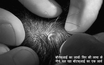 लौटने के निर्धारित समय से कुछ सप्ताह पहले जैरी का सिर खुजलाने लगा। यह कोई बड़ी बात नहीं थी। वह और उसके साथी विद्यार्थी तब तक अच्छी तरह जान गए थे कि त्वचा की फफूंद, चिगर (एक तरह का कटिबन्धी पिस्सू) तथा मच्छरों का काटना और त्वचा की अन्य तकलीफें - ये सब तो उष्णकटिबन्धी लोलैण्ड के इलाकों में काम करने वाले जीव विज्ञानियों की किस्मत में लिखा ही था। उनका क्षेत्रीय केन्द्र एक बड़े दलदल से लगा हुआ था, और रात्रि के भोजन के बाद जब वे व्याख्यानों को सुन रहे होते तो मच्छरों के झुण्ड उन पर हमला बोल देते थे। पहले तो जैरी को लगा कि उसकी खोपड़ी में हो रही खुजली किसी मच्छर के काटने के कारण होगी, और थी भी; मगर साधारण मच्छर-दंश के विपरीत वह खुजली शान्त नहीं हुई। कई दिनों तक मन ही मन कुढ़ने के बाद जैरी ने बाहरी मदद तलाश की। उसकी एक साथी विद्यार्थी, एक चिकित्सा कीट-विज्ञानी, उसके घाव की जाँच करने के लिए राज़ी हो गई। उसने जो बताया उससे बेचारे जैरी में भय की लहर दौड़ गई। उसकी खोपड़ी पर एक बारीक छेद में से एक कुलबुलाते कीड़े का श्वास-छिद्र नज़र आ रहा था। एक बॉटफ्लाई की वीभत्स इल्ली उसके सिर की त्वचा के भीतर पल रही थी और जैरी का मांस खा रही थी! प्रकृति से इतनी घनिष्ठता जैरी के लिए कुछ ज़्यादा ही हो गई थी और वह उस इल्ली को बाहर निकलवाने के लिए मदद माँगता हुआ इधर से उधर घूमता रहा।