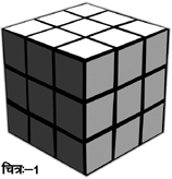 आम तौर पर हम सममिति यानी सिमैट्री (Symmetry) को आकार का एक गुण मानते हैं। लेकिन यह गणित में भी शामिल है। किसी भी सममित चीज़ को कुछ ऐसे बदला जा सकता है कि वह बदली अवस्था में भी सम का गुण न खोए। ये तरीके क्या हैं, कितने हैं और इनके ज़रिए सममित चीज़ों का विश्लेषण कैसे किया जा सकता है हम गणित की ग्रुप थियरी के ज़रिए समझ सकते हैं। भौतिकशास्त्र और रसायनशास्त्र में ही नहीं, सममिति का सामना हम अपनी आम ज़िन्दगी में भी करते हैं जैसे रूबिक क्यूब, गद्दी, उपरोक्त जैसे कई पैटर्न इत्यादि। इन सबके बारे में हमारी समझ बढ़ती है ऐसी गणितीय सोच से।1974 में एरनो रूबिक ने एक ऐसे खिलौने का आविष्कार किया जिसने आज तक लोगों को अपने सम्मोहन में बाँधकर रखा है। आपने भी शायद कभी-न-कभी इस रंगीन और जादुई खिलौने को देखा होगा जिसे हम आज रूबिक क्यूब के नाम से जानते हैं। आप में से कइयों ने शायद इस खिलौने की पहेली को हल करने की कशमकश में घण्टों बिताए होंगे। और कुछ लोगों को इसे हल करने में सफलता भी मिली होगी। पर यह भी हो सकता है कि आपको इसके बारे में कुछ भी न पता हो। ऐसे लोगों के लिए नीचे एक अनछुए रूबिक क्यूब का चित्र दिया गया है (चित्र-1)। क्यूब का हर एक तल नौ वर्गों से मिलकर बना हुआ है और चित्र में क्यूब की जो अवस्था दिखाई गई है उसमें हर एक तल पर जो वर्ग हैं, वे एक ही रंग के हैं। असल में ये वर्ग उन छोटे-छोटे क्यूब के ही तल हैं जिनसे मिलकर रूबिक क्यूब बना हुआ है। अगर क्यूब को हाथों में पकड़कर तलों को कुछ समय के लिए घुमाया जाए तो आप पाएँगे कि तलों के रंग मिल-जुल गए हैं और क्यूब को उसकी शुरुआती अनछुई स्थिति में पहुँचाने का कोई स्पष्ट तरीका नहीं है। क्यूब को उसकी अनछुई स्थिति में पहुँचाने की यह पहेली ही इस खेल की चुनौती है।