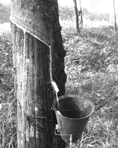 चित्र 2 : जब रबड़ के पेड़ से निकलने वाले दूध की व्यावसायिक उपयोगिता समझ में आई तो रबड़ के पेड़ से लेटैक्स इकठ्ठा करने के तरीकों में विविधता आई.