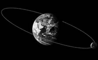 * चन्द्रमा पृथ्वी के चारों ओर घूमता है (परिक्रमण)।